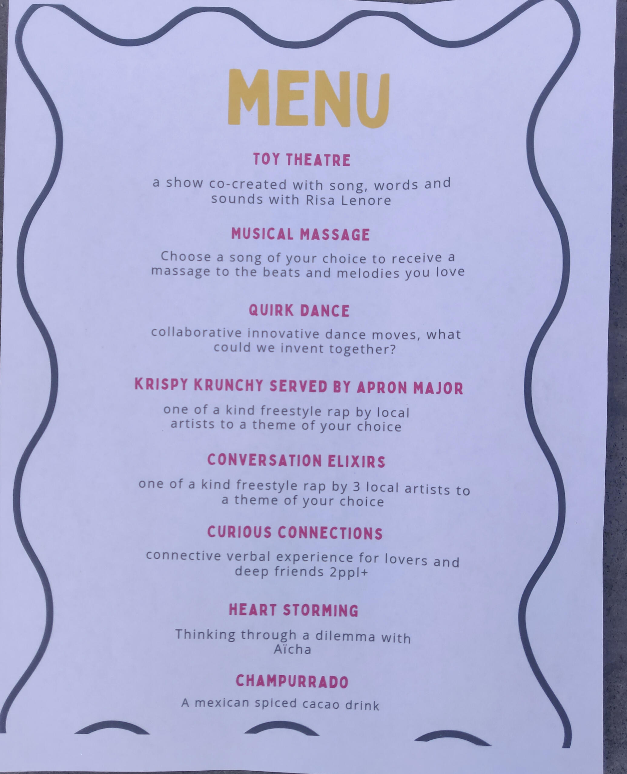 Idalia Ramos, Krispi, Addley, Richie Rhombus, Risa Lenore, Aïcha Doucouré, Idalia Ramos (mom)NEWS: The Experience Cafe will be expanding into a village! meaning adding other groups to the mix. So in addition to art experiences, adding a free-school for learning, a kitchen for free delicious meals. Reach out if your group of organization would like to contribute